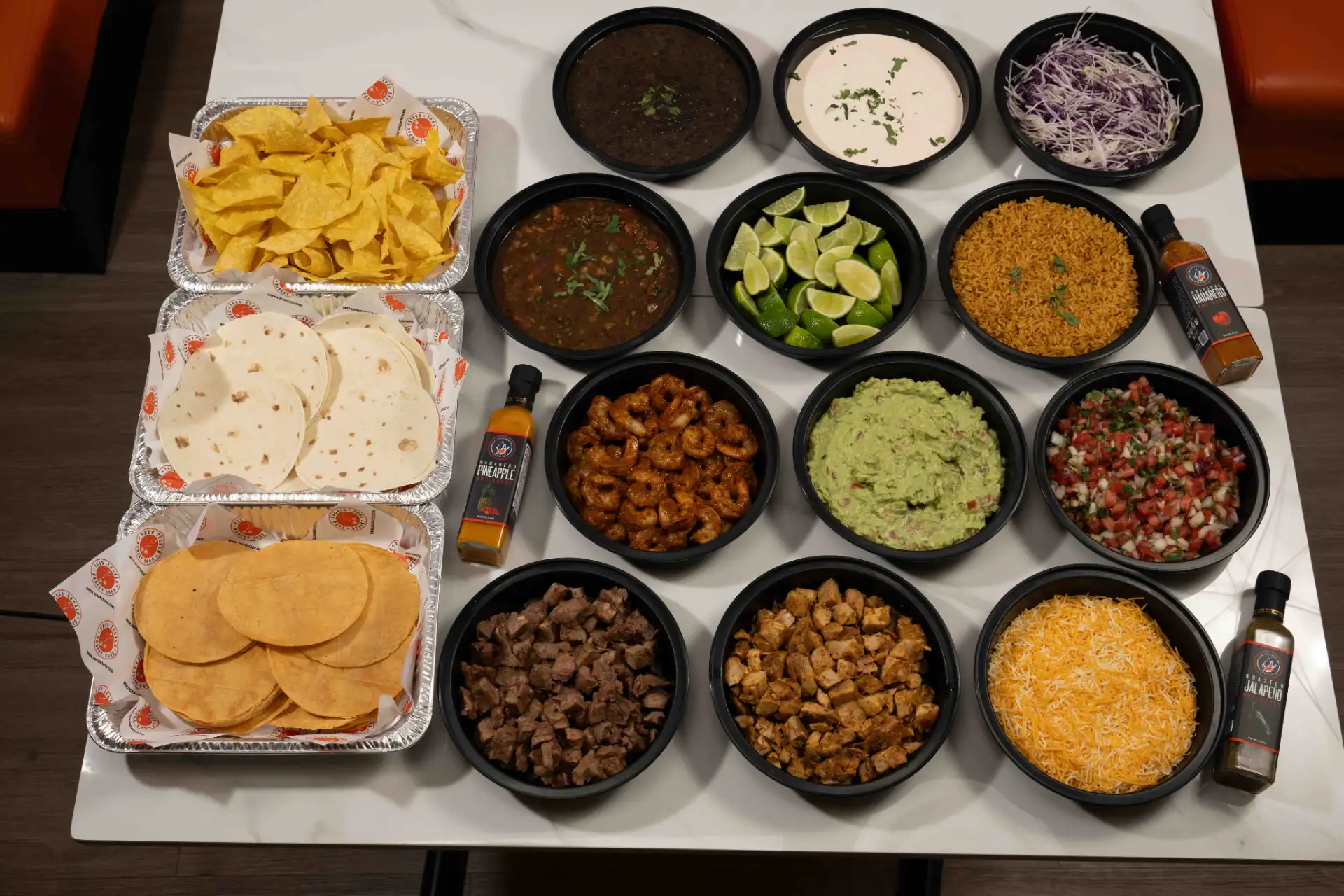 10 Burritos with your choice of proteins, filled with Rice, Black Beans, Pico de Gallo, Chipotle sour cream